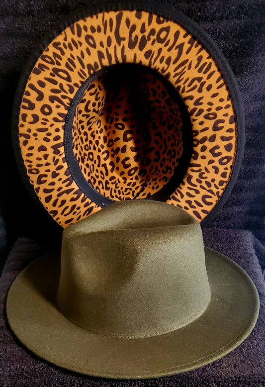 ARMY GREEN WITH LEOPARD LINING FEDORA